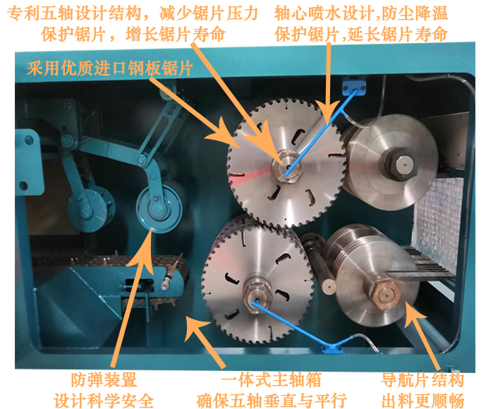 降溫系統(tǒng):采用軸芯噴水技術(shù),防塵環(huán)保,保護鋸片,能確保鋸片持續(xù)工作,延長鋸片壽命。