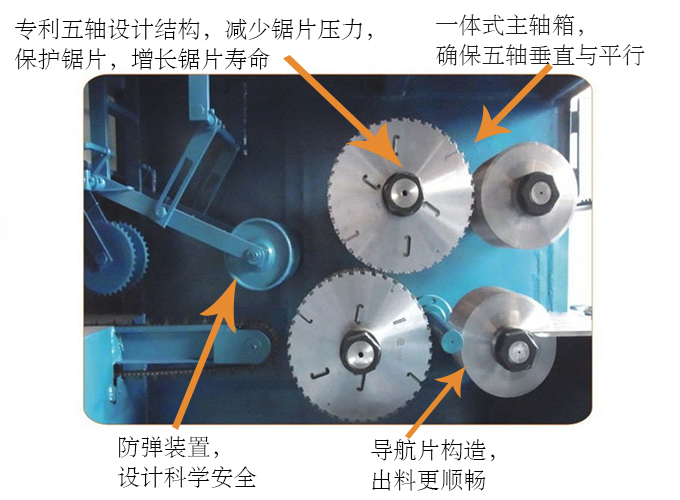 ZQ200型原木多片鋸是針對(duì)原木鋸切而設(shè)計(jì)的專用機(jī)床,采用五軸結(jié)構(gòu)設(shè)計(jì)-前鋸后導(dǎo)航確保木板的精確度,無論木板長(zhǎng)短均可保證鋸切木材尺寸公差在0.2mm-0.5mm之內(nèi),尺寸標(biāo)準(zhǔn)偏差小,節(jié)約木料,上下鋸軸,鋸片采用進(jìn)口帶刮刀鋸片,鋸切表面光滑,無需再刨,保證不燒鋸片。采用自動(dòng)分中裝置,提高木材的利用率;上壓輥主動(dòng)增加壓力,送料平穩(wěn);軸心噴水冷卻鋸片,去脂降溫,增強(qiáng)鋸片的使用壽命。一次多片,大大提高工效;