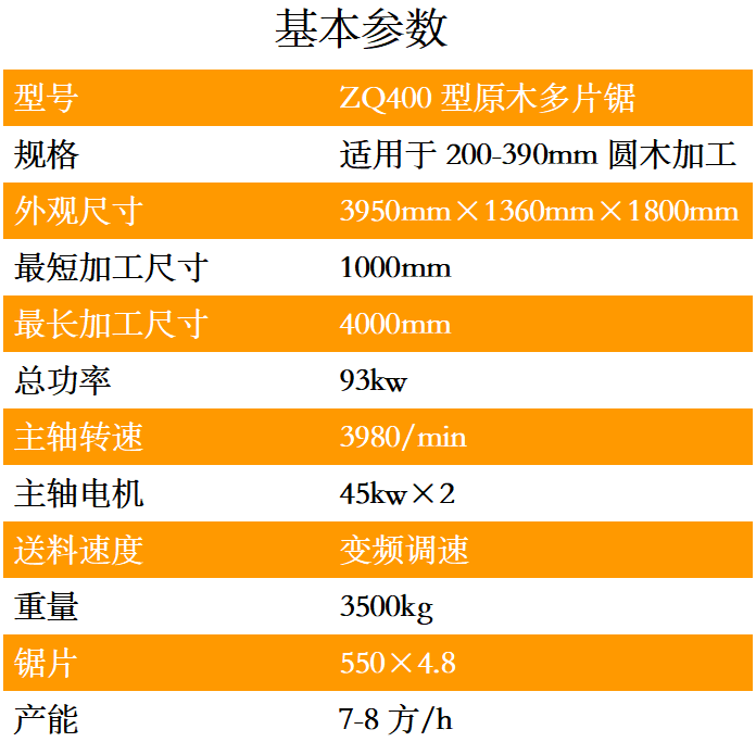 ZQ400型原木多片鋸是一種用于原木的開破以及分片的高性能專用機械