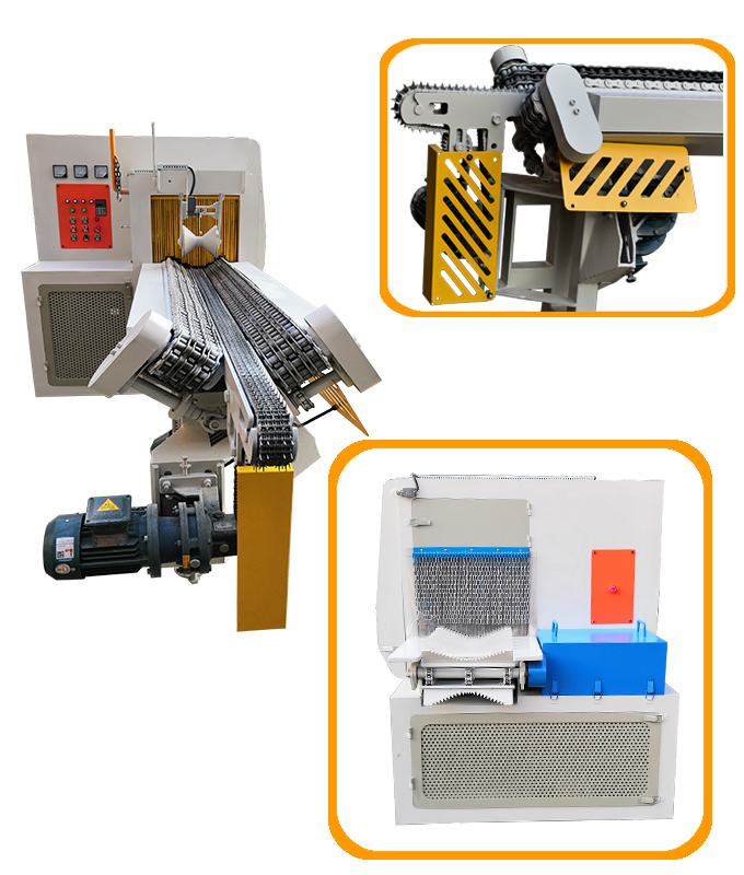 送 料:采用四排尖齒鏈條輸送,機上配有變頻智能調速器,可以對大小木料的進料速度實行自由調速。原木可以實現(xiàn)自動分中,機上還配有限位開關,防止超去規(guī)格木料進入,防止卡木避免對機器造成損壞。