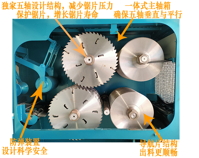 ZQ500型原木多片鋸是針對原木鋸切而設計的專用機床,采用前鋸后導航確保木板的精確度,無論木板長短均可保證鋸切木材尺寸公差在0.2mm-0.5mm之內,尺寸標準偏差小,節約木料,上下鋸軸,鋸片采用進口帶刮刀鋸片,鋸切表面光滑,無需再刨,保證不燒鋸片。采用自動分中裝置,提高木材的利用率;上壓輥主動增加壓力,送料平穩;國內首創,軸心噴水冷卻鋸片,去脂降溫,增強鋸片的使用壽命。一次多片,大大提高工效;