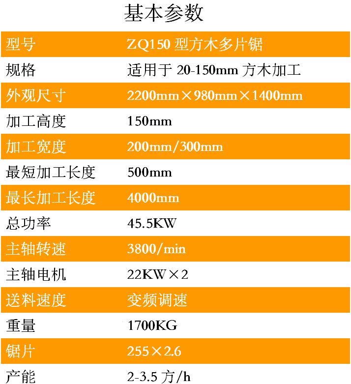 1.ZQ150型方木多片鋸采用獨(dú)立5條滾軸傳動(dòng)設(shè)計(jì),可以保證同一個(gè)平面線上,送料平穩(wěn)。
