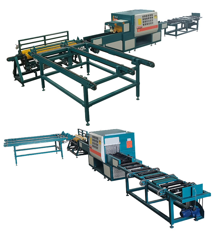 ZQ350型全自動原木多片鋸是針對原木鋸切而設計的專用機床,其主要特點與性能:帶自動進料架、自動出料架、自動翻料架,可自動進料、自動對中、自動出料、自動翻料,極大提高效率降低人力成本。采用五軸結構設計-前鋸后導航確保木板的精確度,無論木板長短均可保證鋸切木材尺寸公差在0.2mm-0.5mm之內,尺寸標準偏差小,節約木料,上下鋸軸,鋸片采用進口帶刮刀鋸片,鋸切表面光滑,無需再刨,保證不燒鋸片。采用自動分中裝置,提高木材的利用率;上壓輥主動增加壓力,送料平穩;國內首創,軸心噴水冷卻鋸片,去脂降溫,增強鋸片的使用壽命。一次多片,大大提高工效;