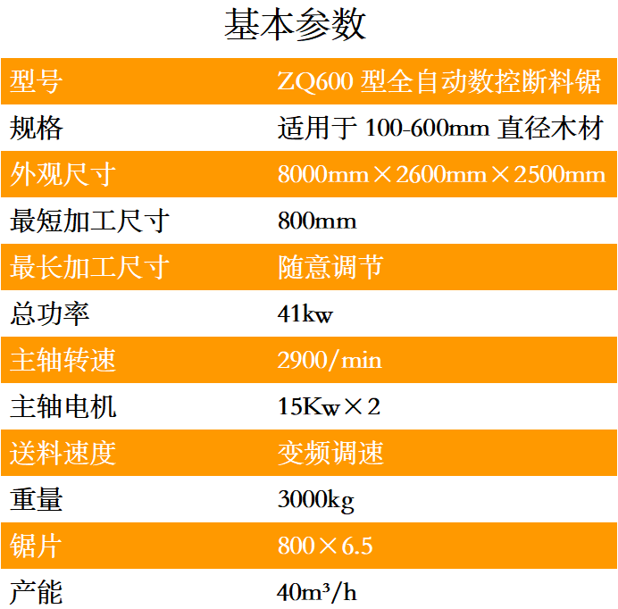 ZQ600型全自動數控斷料鋸是一種用于截斷圓木的專用機器,可代替傳統的斷木機器。采用手自一體的液壓驅動,只需一人便可輕松操控,穩定性高,加工表面平整光潔,避免二次加工。加工長度和速度均可根據實際情況調整,鋸片可配高速鋼或合金鋸片。